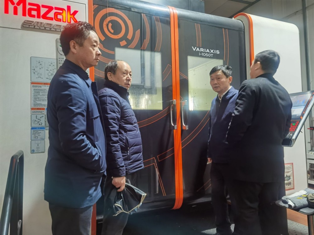 省經(jīng)信廳副廳長郭濤(右二)參觀五軸加工中心